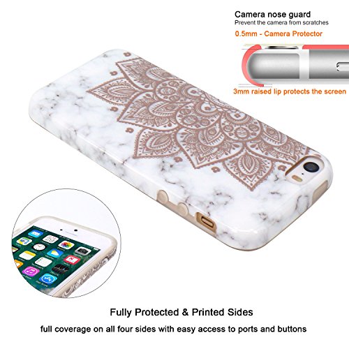 JIAXIUFEN Shiny Rose Gold Half Mandala Marmo Design TPU Gel Silicone Protettivo Skin Custodia Protettiva Shell Case Cover Compatibile con iPhone 5 5S SE