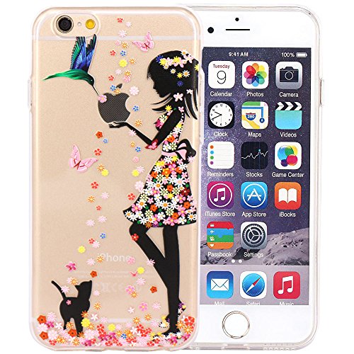 JIAXIUFEN TPU Gel Silicone Protettivo Skin Custodia Protettiva Shell Case Cover Per Apple iPhone 6 6S - Flower Small Girl