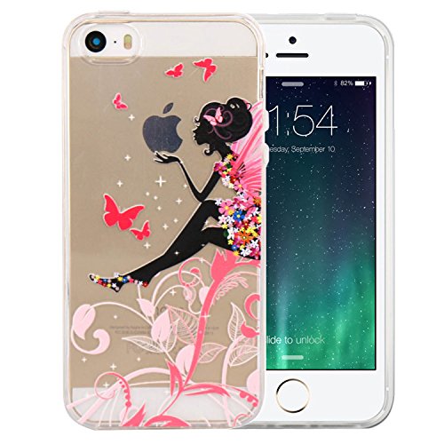 JIAXIUFEN TPU Gel Silicone Protettivo Skin Custodia Protettiva Shell Case Cover Per Apple iPhone 5 5S SE - Flower Fairy