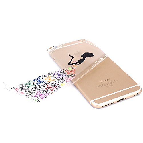 JIAXIUFEN TPU Gel Silicone Protettivo Skin Custodia Protettiva Shell Case Cover Per Apple iPhone 6 6S - Black Colorful Butterfly Girl