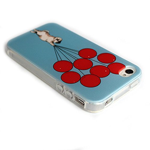 JIAXIUFEN TPU Gel Silicone Protettivo Skin Custodia Protettiva Shell Case Cover per Apple iPhone 4 4S -Dog with Many Red Ballon Style