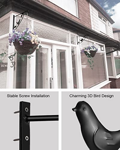 Jiayi Parete Staffa per Pianta 2 Pezzi Cesto Sospeso Staffe per Fiori all'Esterno Metallo Gancio per Cesto Pensile 33x 25.4 cm Nero