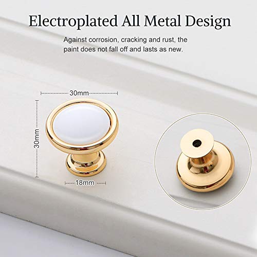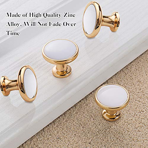 Elegante E Funzionale: Design classico della manopola arrotondata, con superficie liscia per un tocco fine. La collisione dei colori tra l'oro nobile e l'elegante bianco, migliora ed evidenzia rapidamente l'aspetto di ogni stanza, tutto ciò che serve è un nuovo set di manopole per mobili per dare all'intera stanza un aggiornamento elegante.
