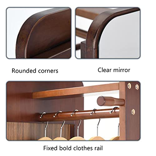 JIAYING Appendiabiti Appendiabiti Da Terra Garment Garment Rack Specchio Con Specchio A Specchio A Piena Lunghezza, Con Asta E Ruota Appesa, Per Negozio Di Abbigliamento, Spogliatoio, F(Color:Marrone)