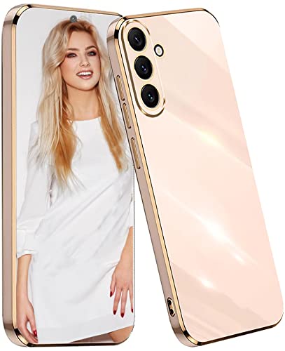 JIEBAOBEI Cover per Samsung Galaxy S23, Custodia Protettiva Ultra Sottile ed Elegante in Silicone TPU Flessibile con Golden Edge, Placcatura Phnom Penh Design Case, Rosa