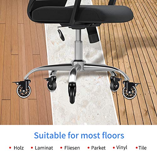 Jiehu Set di 5 Ruote per sedie da ufficio 11 x 22mm Con freno Rotelle silenziose perfette per pavimenti in legno,per Pavimenti Set duri universali,Ruote in gomma di ricambio per sedia ufficio