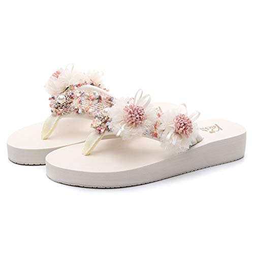 JIEIIFAFH Donne Estate Flip Flops Boemia Punta della Clip Antisdrucciolevoli Zeppe Spiaggia dei Pistoni delle Scarpe da Spiaggia dei Fiori di Estate Donne di Modo (Color: BG, Shoe Size: 35)