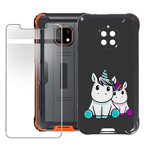 JIENI Cover per Blackview 4900 (5.70") Custodia + Vetro Temperato Pellicola, Black Silicone Custodie Protettivo Morbido Shell Cartoon Case TPU Guscio Copertura - Come L'Amore