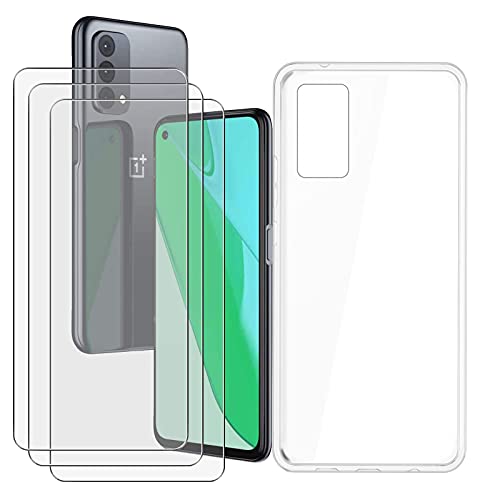 -Trasparente per OnePlus Nord CE 5G custodia + pellicola,TPU di alta qualità, forte resistenza alla graffiatura, capacità anti-giallo, anti-freddo,questo materiale ha una resistenza ad alta durata e forma ed, buona flessibilità per fornire una perre protezione per i telefoni cellulari. È il perr regalo per un amico o un parente.