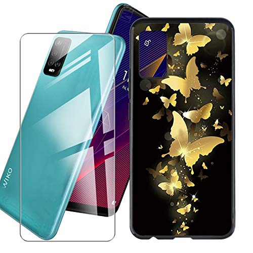 JIENI Cover per Wiko Power U20 Custodia + Vetro Temperato Pellicola (6.82"), Black Silicone Custodie Protettivo Morbido Shell Cartoon Case TPU Guscio Copertura - WMA30