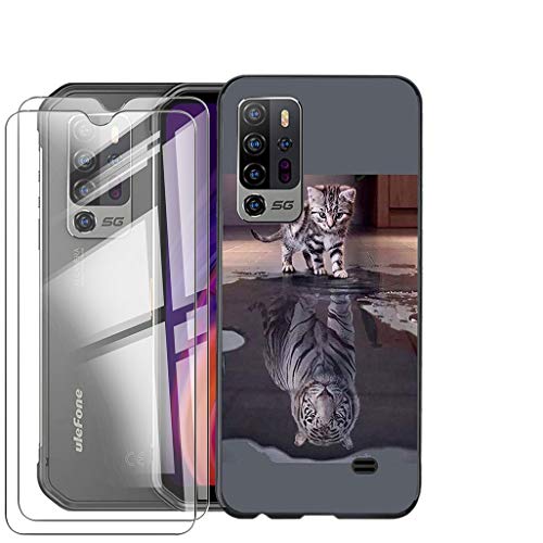 JIENI Cover per Ulefone Armor 11 5G Custodia + 2 Pezzi Vetro Temperato Pellicola (6.1"), Black Silicone Custodie Protettivo Cartoon Case Morbido TPU Guscio Copertura - Immagine invertita