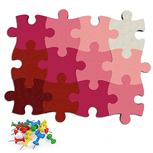 Jigsaw Bacheca in sughero, 12 pezzi adesivi da parete in feltro, per pareti, a forma di puzzle, ad Eva, per foto, per display, poster, obiettivi, note, decorazione
