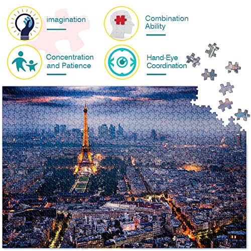 Mini Jigsaw Puzzle 1000 Pezzi per Adulti Torre Eiffel Puzzle in legno Cervello Esercizio Sfida Gioco Intrattenimento Regali Bambini Adolescenti Attività in famiglia 75 * 50 cm
