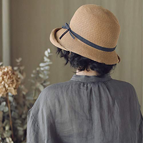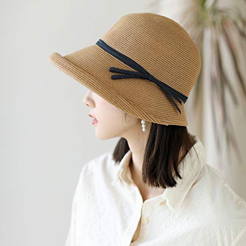 Jiheousty Cappello da Sole Vintage Intrecciato Hepburn da Donna Elegante Contrasto Colore Bowknot Cappellino Avvolgente Estivo Pieghevole Arrotolabile Corto
