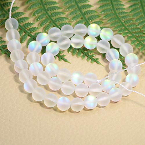 Jihuoo - Perline in cristallo opaco con sirena, aurora, pietra di luna, 10 mm, 100 pezzi