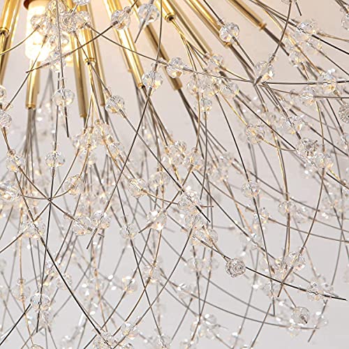 JIINOO Moderna Firework Lampadari, 6-Luci Dente di Leone Lampada da Soffitto Montaggio a Filo di Cristallo Plafoniere di Illuminazione Sospensione per Soggiorno Sala da Pranzo (Senza Lampadina) 62cm