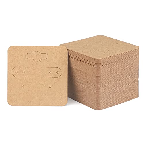 JijAcraft Carta Porta Orecchini 5x5CM, 100 Pezzi Schede Display Orecchini in Carta Kraft, Etichette Cartoncino Esposizione Orecchini a Bottone Gioielli Collana (Marrone)
