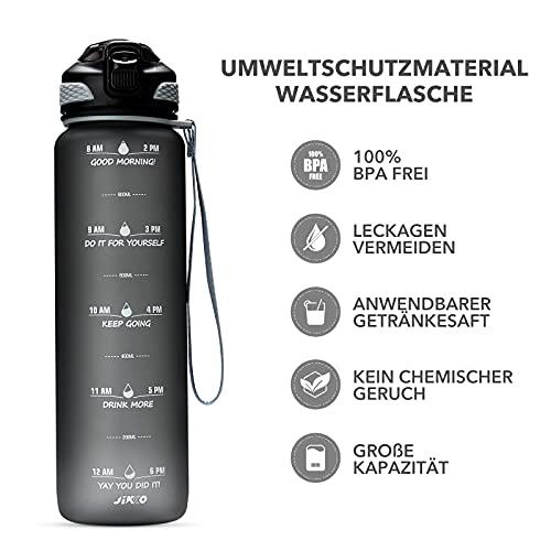JIKKO Borraccia da 1 l con cannuccia in silicone, adatta per lo sport, con supporto, lavabile in lavastoviglie, senza BPA, Eco bottiglia a prova di perdite, per bambini, fitness, palestra, ciclismo