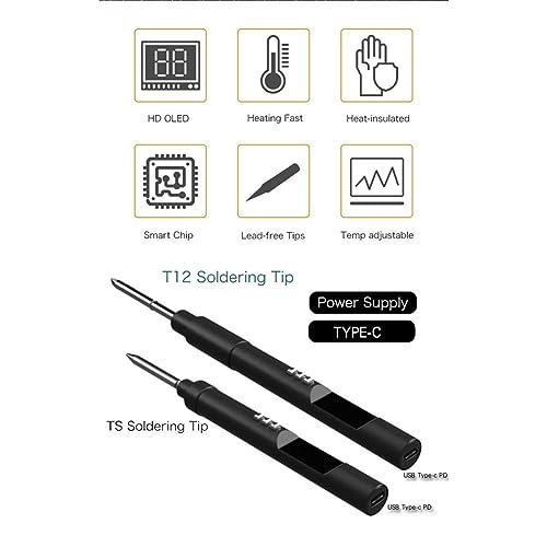 Jikoiuty 1Set saldatore elettrico PTS200 V2 PD 100 W, riscaldamento rapido, open source, nero, per aggiornamento firmware PD3.0, punta K