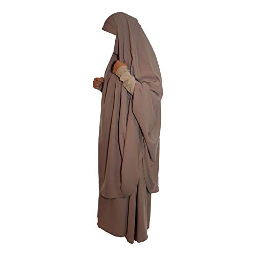 Set Jilbab in due pezzi (gonna + khimar) con polsini in cotone elasticizzato taglia unica, ideale per la preghiera quotidiana Hajj Umrah copertura completa, Beige, Taglia unica