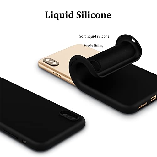 Jilicsan cover iPhone X/XS (5.8"), con pellicola protettiva in vetro temperato 1 pezzo e supporto per telefono 1 cellulare, custodia in silicone liquido, con fodera in microfibra -Nero