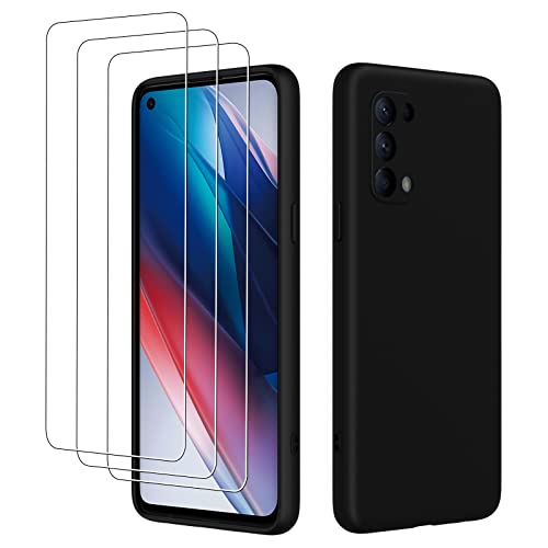 Jilicsan Cover per Oppo Find X3 Lite, con 3 Pack Pellicola Vetro Temperato, Custodia Morbida in Silicone Liquido con Fodera in Microfibra, Case Ultrasottile Antiurto -Nero