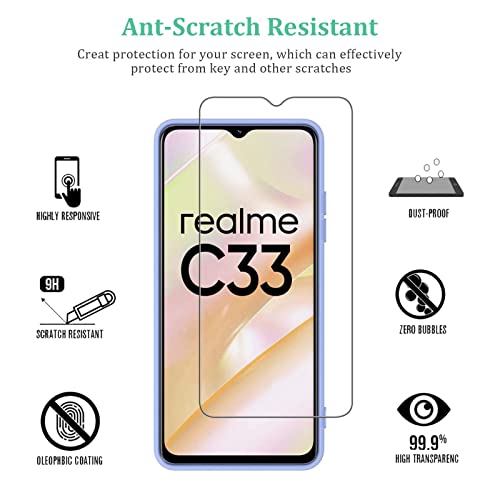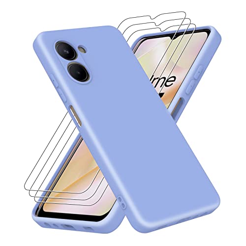 Jilicsan Cover per Realme C33 4G, con 3 Pack Pellicola Vetro Temperato, Custodia Morbida in Silicone Liquido con Fodera in Microfibra, Case Ultrasottile Antiurto -Viola