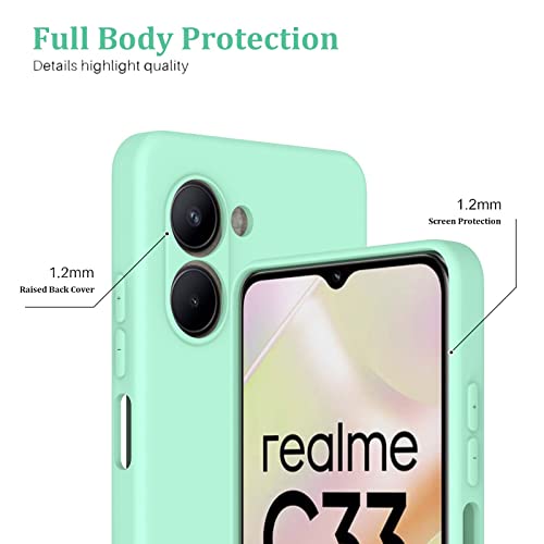 Jilicsan Cover per Realme C33 4G, con 3 Pack Pellicola Vetro Temperato, Custodia Morbida in Silicone Liquido con Fodera in Microfibra, Case Ultrasottile Antiurto -Verde Menta