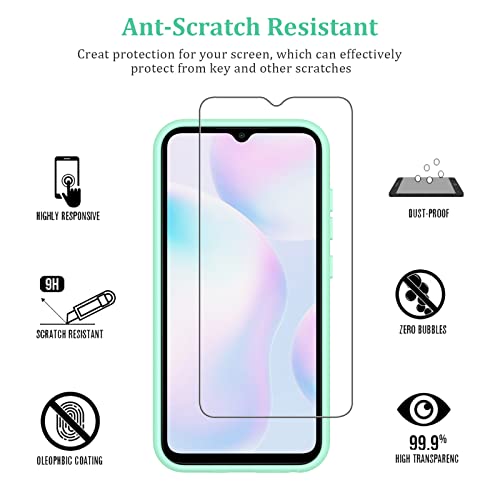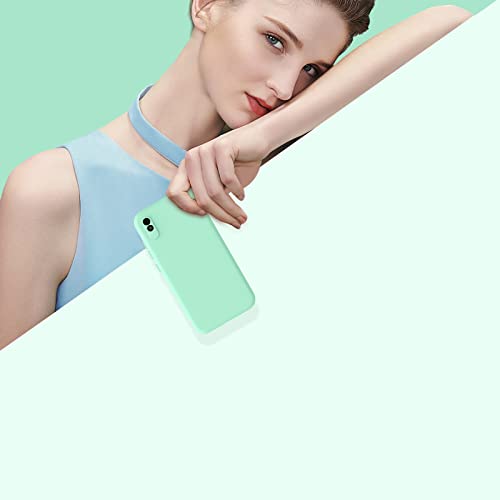 Jilicsan Cover per Xiaomi Redmi 9AT/Redmi 9A, con 3 Pack Pellicola Vetro Temperato, Custodia Morbida in Silicone Liquido con Fodera in Microfibra, TPU Case Ultrasottile Antiurto -Verde Menta
