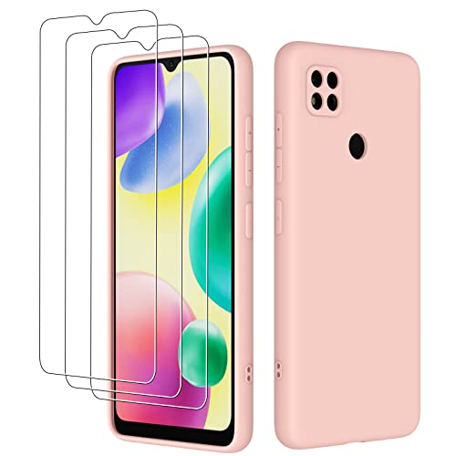 Jilicsan Cover per Xiaomi Redmi 10A, con 3 Pack Pellicola Vetro Temperato, Custodia Morbida in Silicone Liquido con Fodera in Microfibra, Case Ultrasottile Antiurto -Rosa
