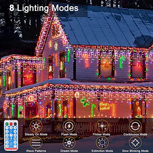 JIMACRO Luci Decorative da Esterno Solari, 8M 264 LED Stringa Luci Esterno, 44Pcs 0.7M+0.5M Luci Natale Esterno Cascata, Impermeabile Decorative Lucine, 8 Modalità Tenda Luminosa Esterno Solare