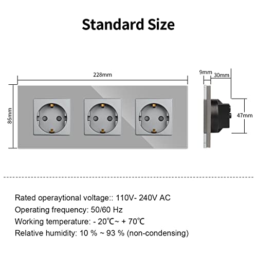 JIMEIDA Presa tripla in vetro, 16 Amp, presa Schuko da incasso, 228 x 86 mm, 250 V, 3 scomparti