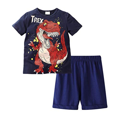 Jimmackey- Bambino Ragazzi Dinosauro Stampare Camicia Maniche Corte Estive Cime + Camuffamento Pantaloni 2pcs Abiti Set (5-6 Anni, Blu Scuro)