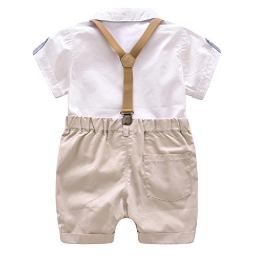 Jimmackey 2Pcs Bambino Ragazzo Camicia Bowknot Cravatta T-Shirt Cime + Bretelle Pantaloncini Abiti Set (Bianca, 12 Mesi)