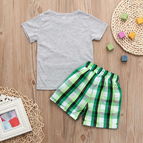 Jimmackey 2Pcs Bambino Ragazzo T-Shirt Fumetto Ricamo Applique Camicia Cime + Plaid Pantaloncini Abiti Set (Grigio, 2 Anni)