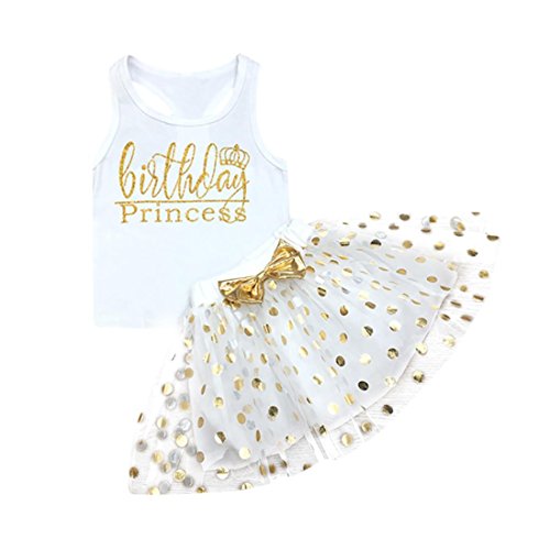 Jimmackey 2PC Neonata Bambine Senza Maniche Lettera Stampato Veste + Bolla Dots Tulle Gonna Vestiti (Bianco, 3 Anni)
