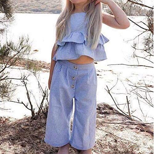 Jimmackey Neonata Strisce Completo, Senza Maniche Volant Gilet Cime + Pantaloni Fascia Bambine Vestiti Set