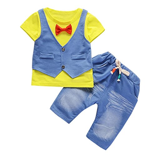 Jimmackey Neonato Bambino Camicia Bowknot Giacca T-Shirt Cime + Pantaloni Gentiluomo Abiti Set (Giallo, 4 Anni)