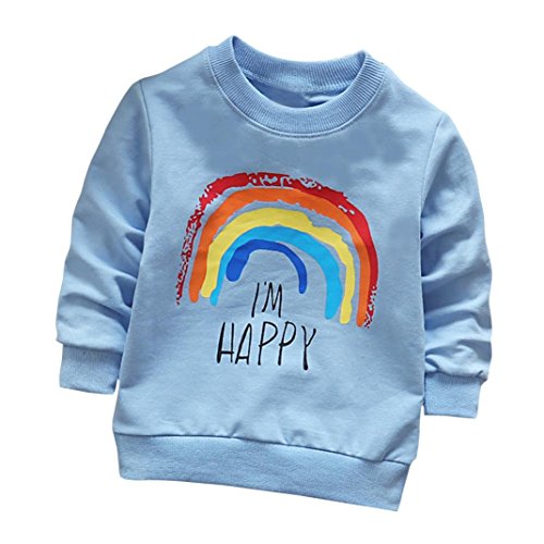 Jimmackey Neonato Bambino Manica Lunga Pullover Felpe Arcobaleno Magliette T-Shirt Cime (Blu, 12 Mesi)