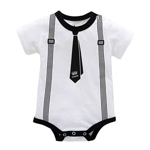 Jimmackey Neonato Ragazzo Manica Corta Pagliaccetto Stampa Cravatta Bowknot Tuta Romper Vestiti (Bianca, 6 Mesi)