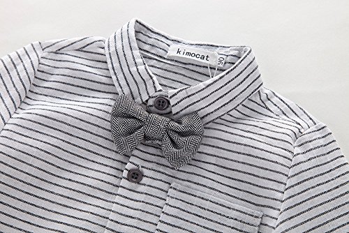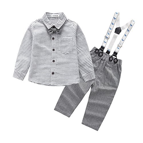 Jimmackey 2pcs Neonato Solido Pagliaccetto Bowknot Cravatta Camicia Body Tuta Cime + Plaid Bretelle Pantaloni Bambino Completo (Grigio #1, 6-12 Mesi)