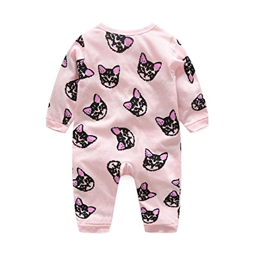 Jimmackey Neonato Toddler Unisex Maniche Lunghe Romper Stampa Gattino Pulsante Pigiama Tuta Vestiti (3 Mesi, Rosa)