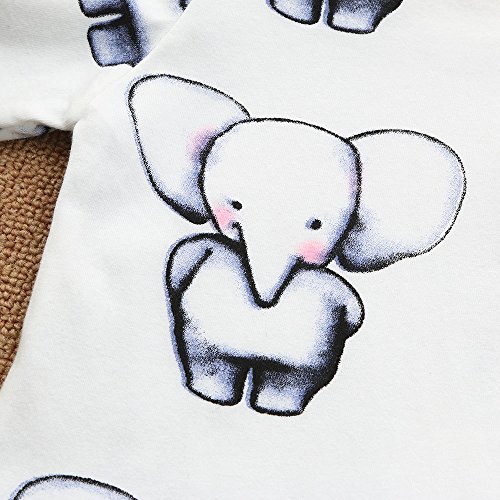 Jimmackey Neonato Unisex Tutine Elefante Stampa Pagliaccetto Manica Lunga Romper Tuta Vestiti(Bianca, 3 Mesi)