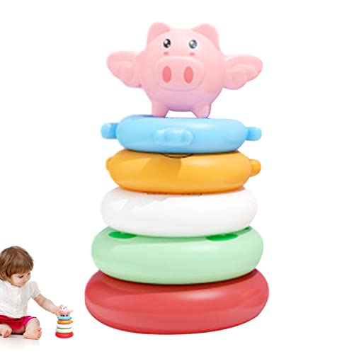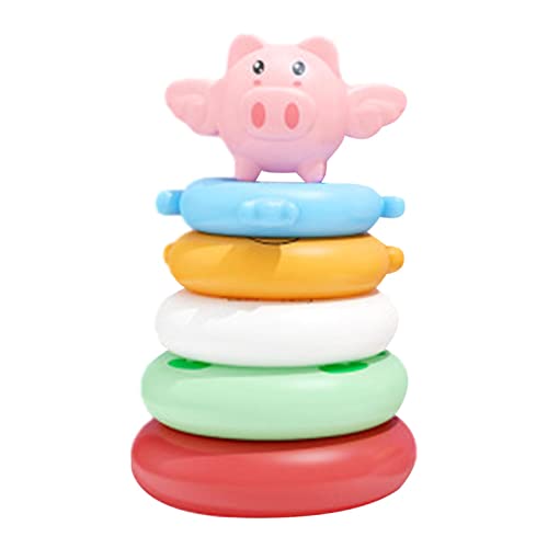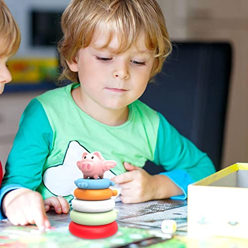 ♗【Accattivante】 Il giocattolo del cerchio impilabile dell'arcobaleno sui maialini è accattivante, soddisfa la curiosità del bambino, le forme carine di una varietà di animali dei cartoni animati e i colori sono molto ricchi