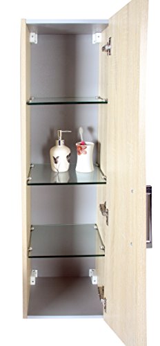 Jindoli - Colonna da bagno sospesa, altezza 120 cm, larghezza 30 cm, colore beige, finitura legno, 1 anta, 4 scomparti Aquazur