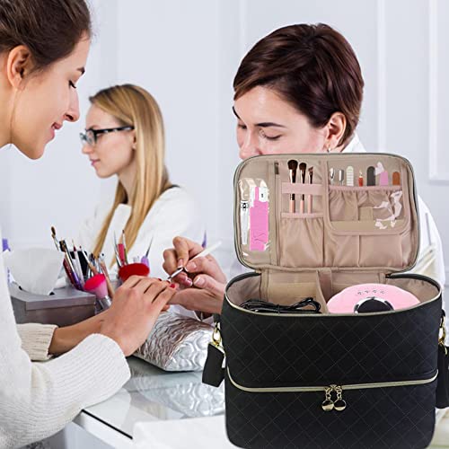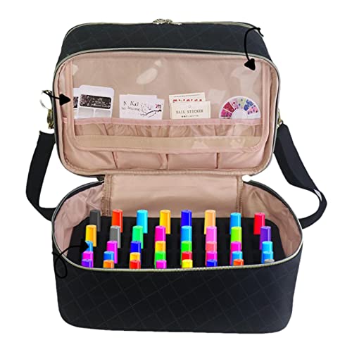 JINGAN Custodia Organizer per Manicure | Borsa per Il Trasporto dello Smalto per Unghie a Doppio Strato | Custodia per Strumenti per Manicure con Manico per Lampada per Unghie e 40 flaconi da 15