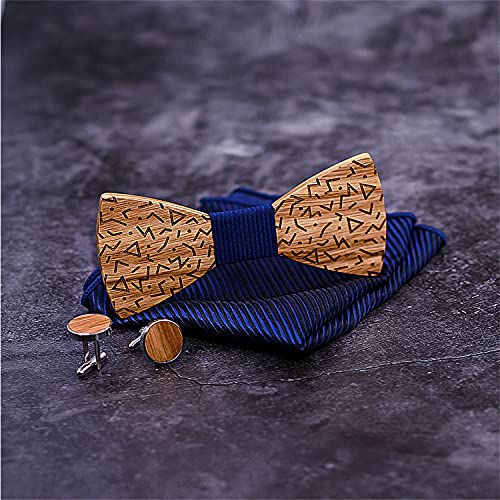 JINGHE Papillon In Legno, Papillon Da Uomo, Papillon Per Feste Di Matrimonio, Set Di Foulard Quadrati Con Gemelli (blu navy)