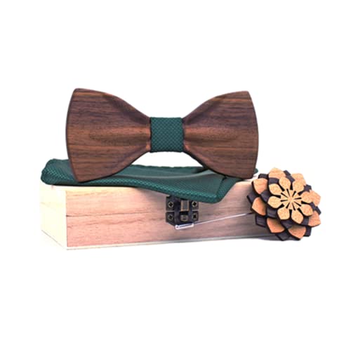 JINGHE Papillon Da Uomo, Papillon Per Cena Di Nozze, Papillon In Legno, Papillon In Legno Con Sciarpa Quadrata Vestito Da Corsage (verde)