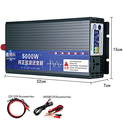 ✔ 【Inverter a onda sinusoidale pura】 Inverter per auto da 3000 W / 4000 W / 5000 W, continuo. Converti DC 12 V / 24 V / 48 V / 60 V / 72 V in CA 220 V, la tensione di uscita è costante e precisa.