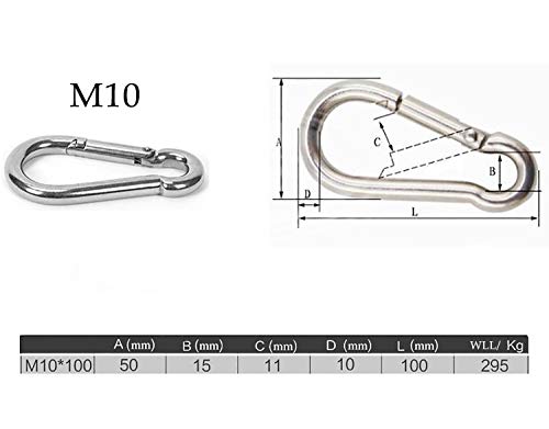 3. Lunghezza: 100 mm, spessore della cinghia: 10 mm, questo moschettone può contenere fino a 295 kg.